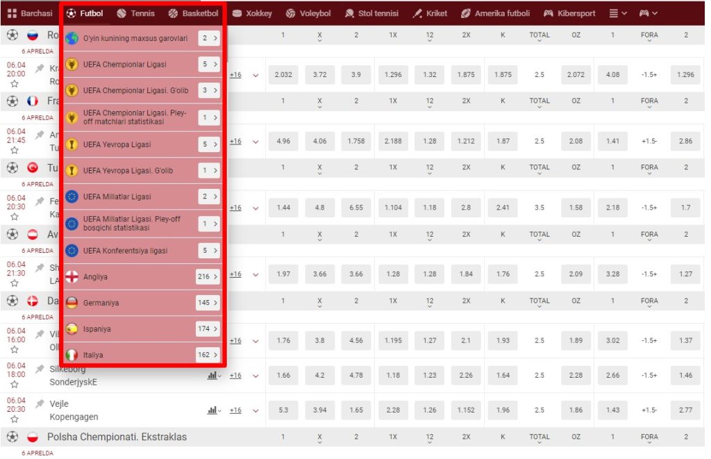 - Ставка на тотал. Это количество голов в матче. Распространенные варианты включают ставки на больше или меньше определенного числа голов.