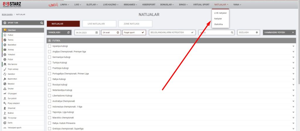 - Перейдите в раздел «Спорт» или «Киберспорт».